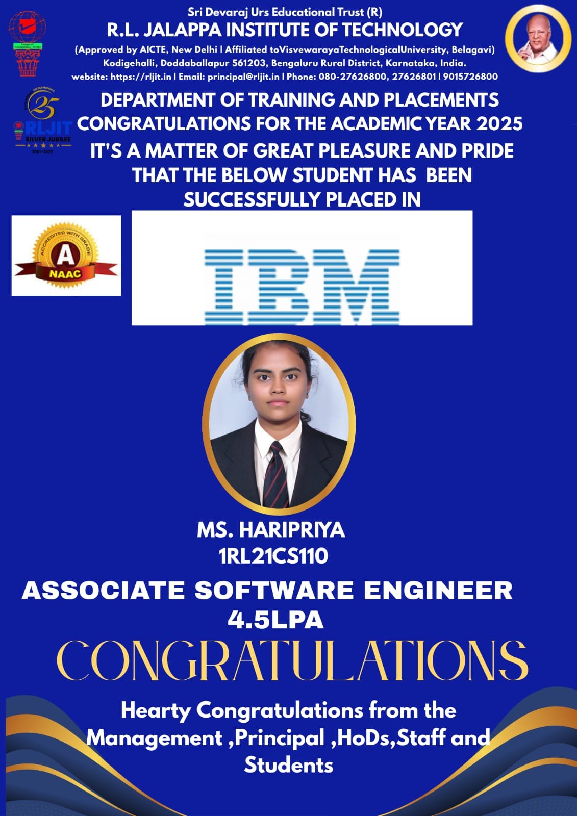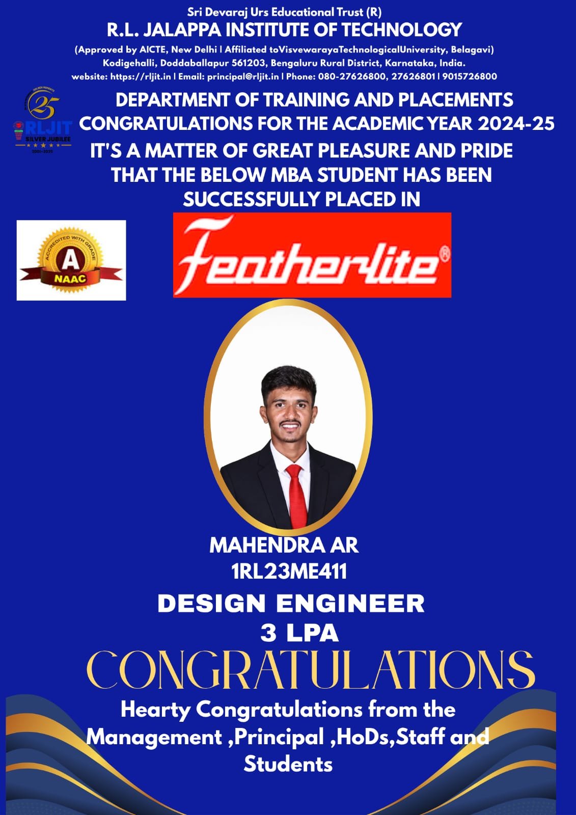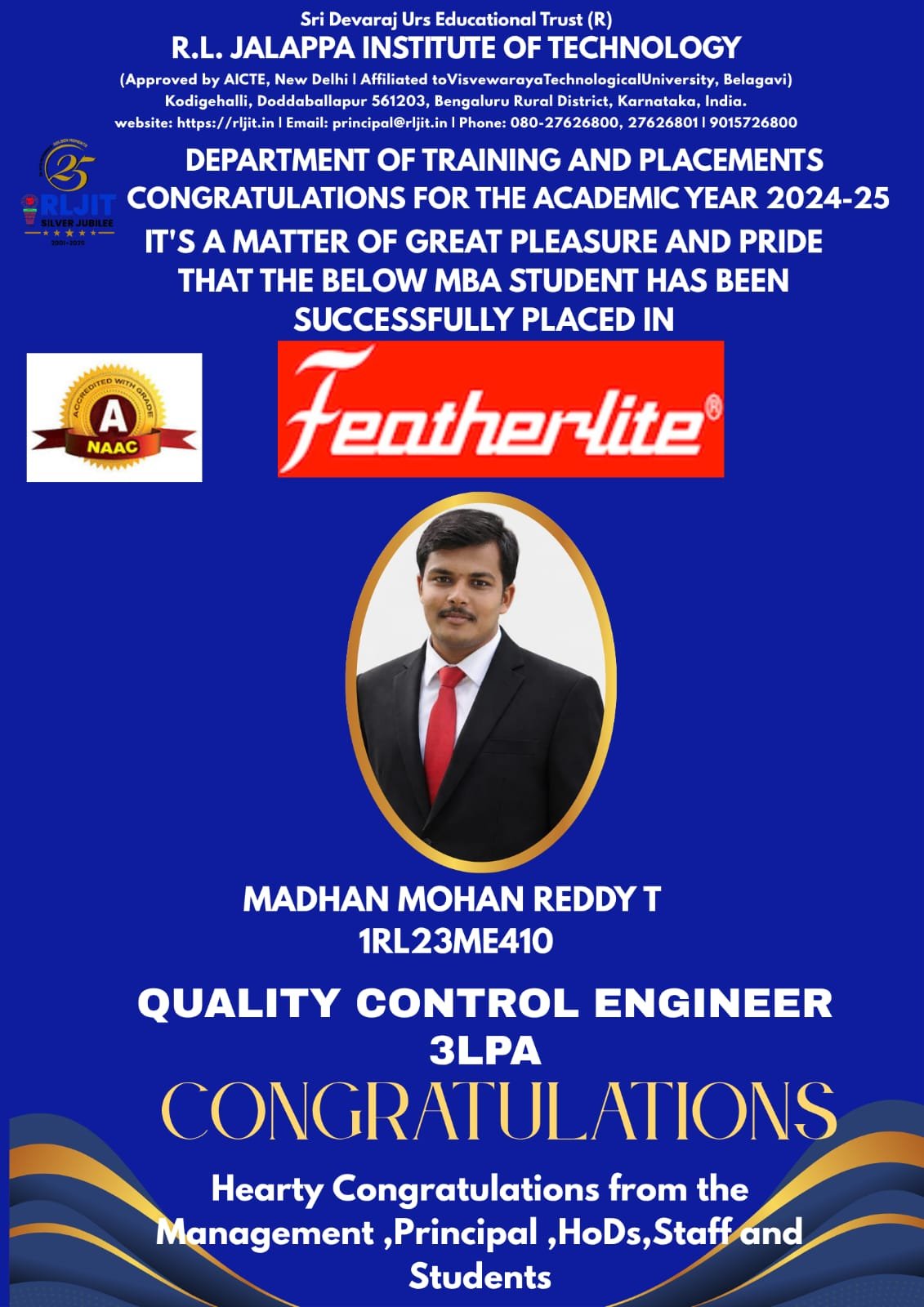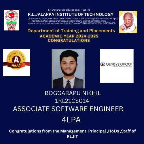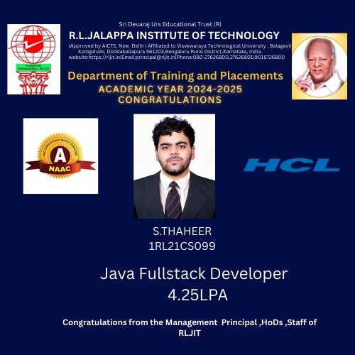 The Dept. of Training & Placement at R L Jalappa Institute of Technology is headed by Prof. Babureddy Nagasandra, M.B.A, M.COM (Ph.D) recognises the need for imparting proper, streamlined and industry oriented training and as such actively organises need-based short and long term programs on a regular basis. R.L.Jalappa Institute of Technology, Karnataka is one of the very few colleges where the concept of HRM has been implemented and proved successful.