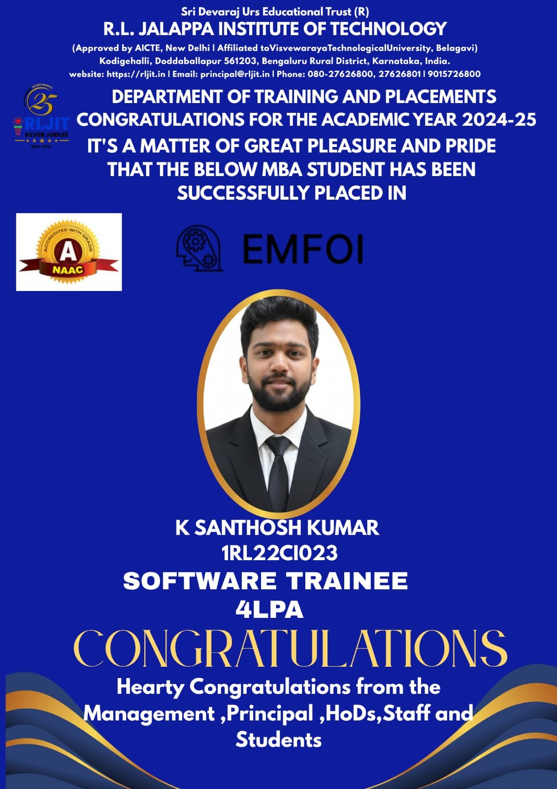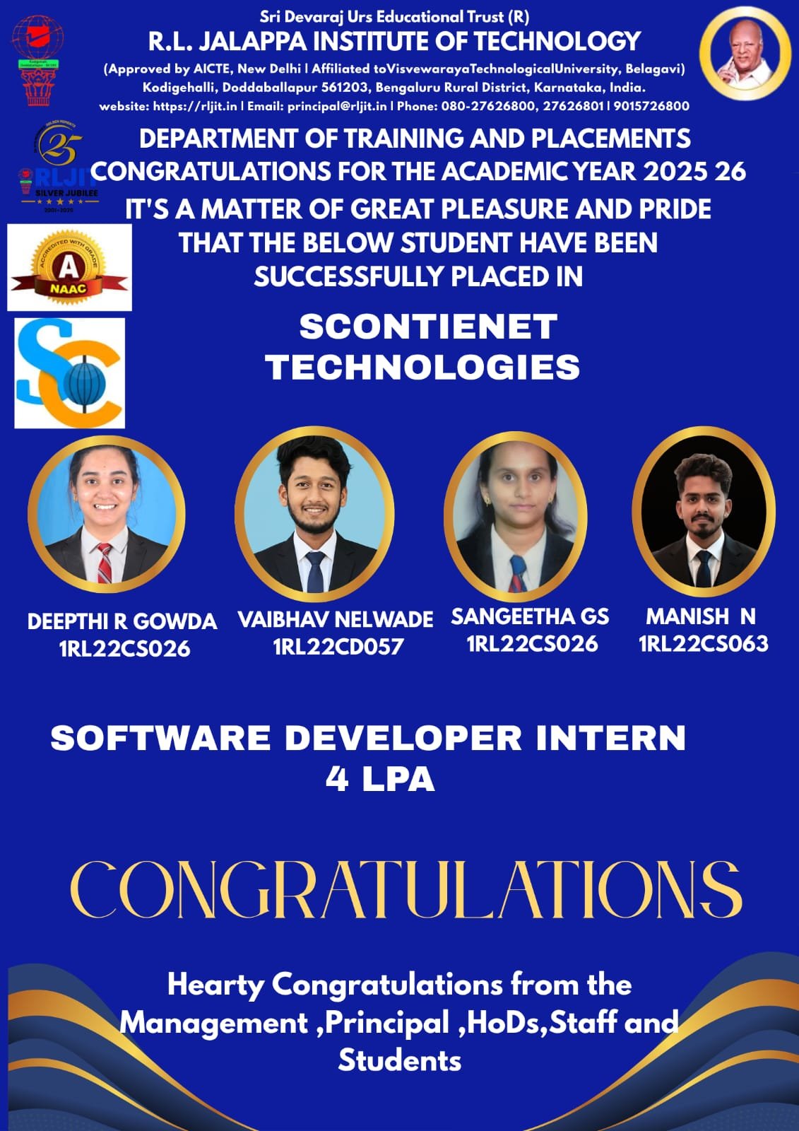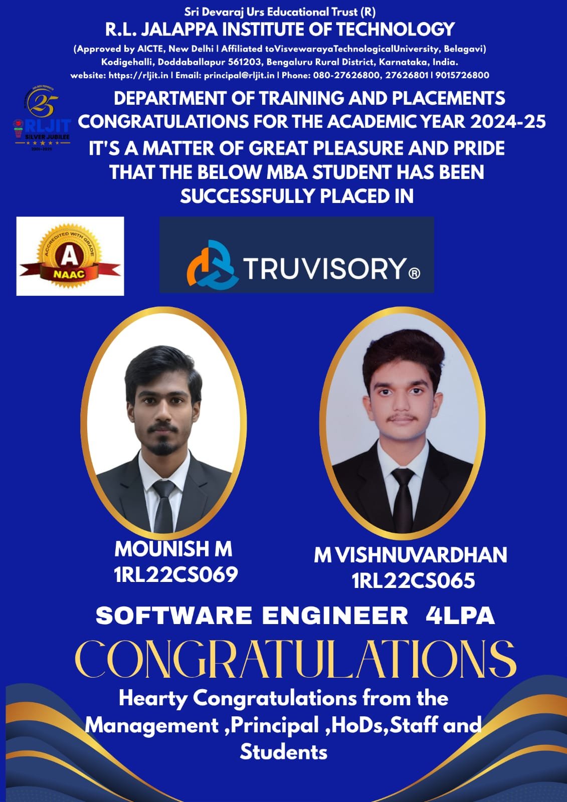The Dept. of Training & Placement at R L Jalappa Institute of Technology is headed by Prof. Babureddy Nagasandra, M.B.A, M.COM (Ph.D) recognises the need for imparting proper, streamlined and industry oriented training and as such actively organises need-based short and long term programs on a regular basis. R.L.Jalappa Institute of Technology, Karnataka is one of the very few colleges where the concept of HRM has been implemented and proved successful.